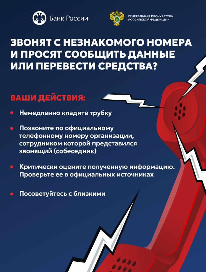 Злоумышленники действуют следующим образом: - жертвам звонят от имени операторов связи и под предлогом необходимости продления договора обслуживания просят сообщить данные паспорта или номера СНИЛС; - спустя непродолжительный период времени гражданам поступают звонки от имени сотрудников правоохранительных органов, сервиса «Госуслуги», которые сообщают недостоверные сведения о совершенном преступлении («государственной измене»), финансировании противоправной деятельности или попытках оформления кредитов на основании ранее сообщенных данных; - в ходе общения преступники выясняют у жертв наличие у них денежных средств. Затем, действуя от имени представителей Центробанка, налоговой службы предлагают в целях подтверждения правомерного владениями ими «задекларировать» денежные средства, путем их передачи «курьеру», и уверяя при этом вернуть в течение двух часов. Необходимо помнить, что представители органов государственной власти в ходе общения с гражданами не выясняют сведения о наличии у них денежных средств, а тем более не требуют подтверждения правомерности их владения.